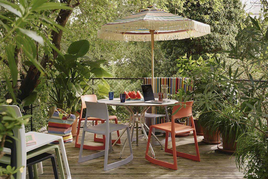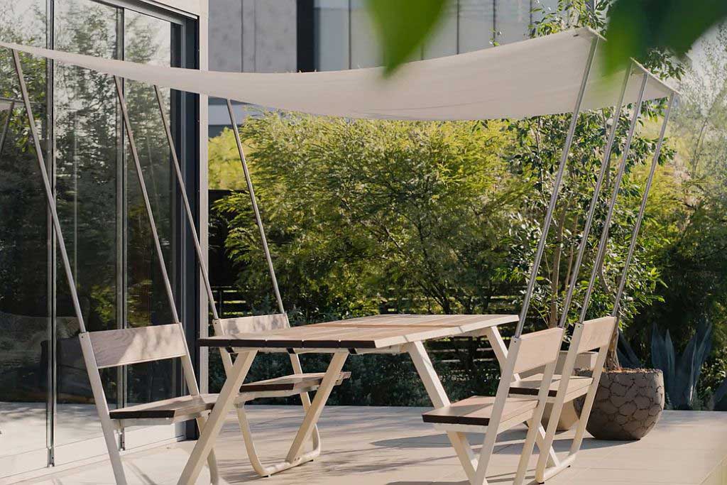 Wetterfeste Möbel mit klarer, zurückhaltender Formensprache unterstützen konzentriertes Arbeiten im Außenraum. Reduziert im Design, wirkungsvoll in der Funktion – für Fokus ohne Ablenkung.