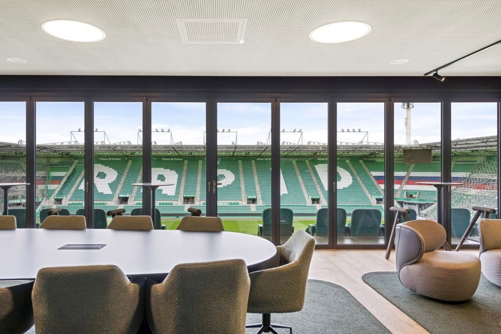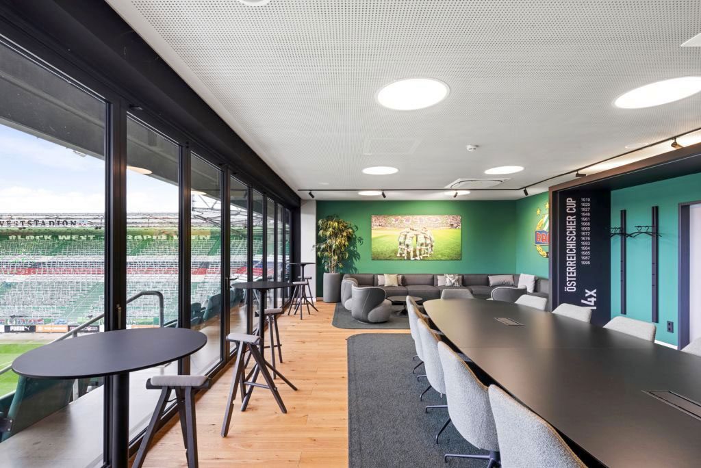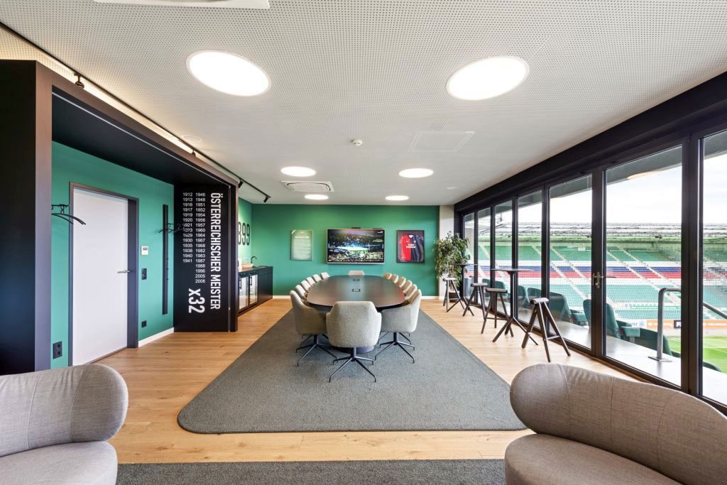 Mit der neuen SK Rapid Business Loge haben wir einen Raum geschaffen, der Funktionalität und Design auf höchstem Niveau vereint und die Marke SK Rapid in einer unverwechselbaren Atmosphäre erlebbar macht. Der exklusive Bereich dient nicht nur als Treffpunkt während der Spiele, sondern wird ganztägig für Präsidiumssitzungen, Meetings, Events sowie Besprechungen mit Gästen, Sponsoren und Vorstandsmitgliedern genutzt.