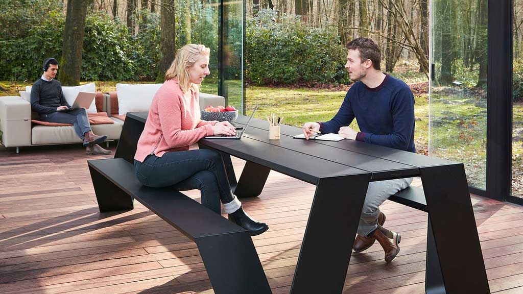 Auch Außenbereiche sind beliebte Treffpunkte, während sie zugleich die Möglichkeit des entspannten Arbeitens bieten. Mitarbeiter können dort neue Kraft schöpfen, aber auch sehr produktiv sein.